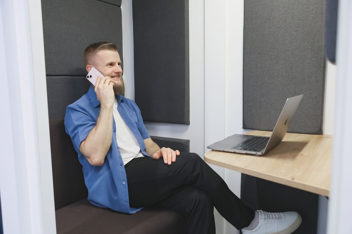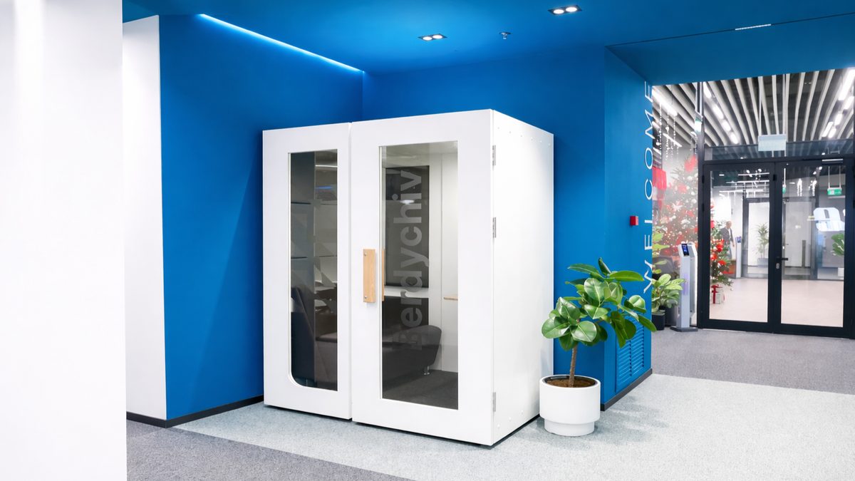 Звукоізольовані кабіни для дзвінків, переговорів та зосередженої роботи. До 35 дБ.