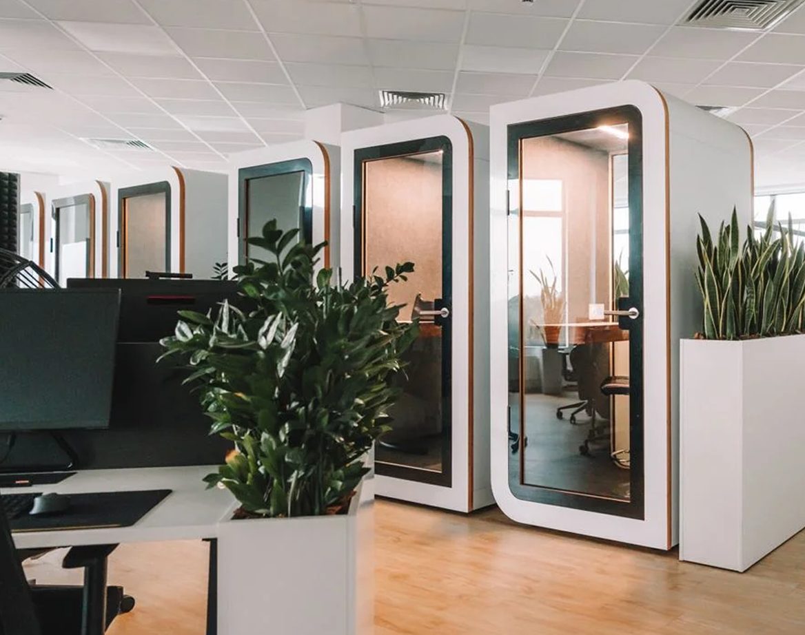 3 кабіни Solo + 1 Duet — зниження шуму на 35 дБ у відкритому офісі